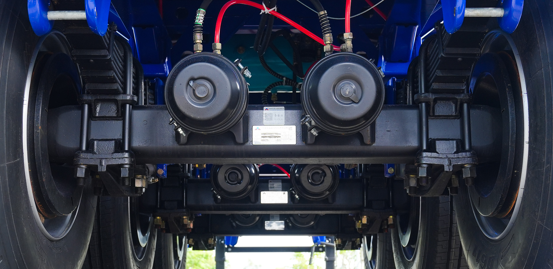 Hệ thống phanh hơi trên 3 trục được phân bổ lực phanh đồng đều, hỗ trợ kiểm soát chuyển động hiệu quả khi xe vận hành ở tốc độ cao hoặc trên địa hình phức tạp. Đồng thời, tích hợp cơ chế phanh dừng hỗ trợ đỗ xe an toàn trên đường dốc, hạn chế nguy cơ trượt lốp.