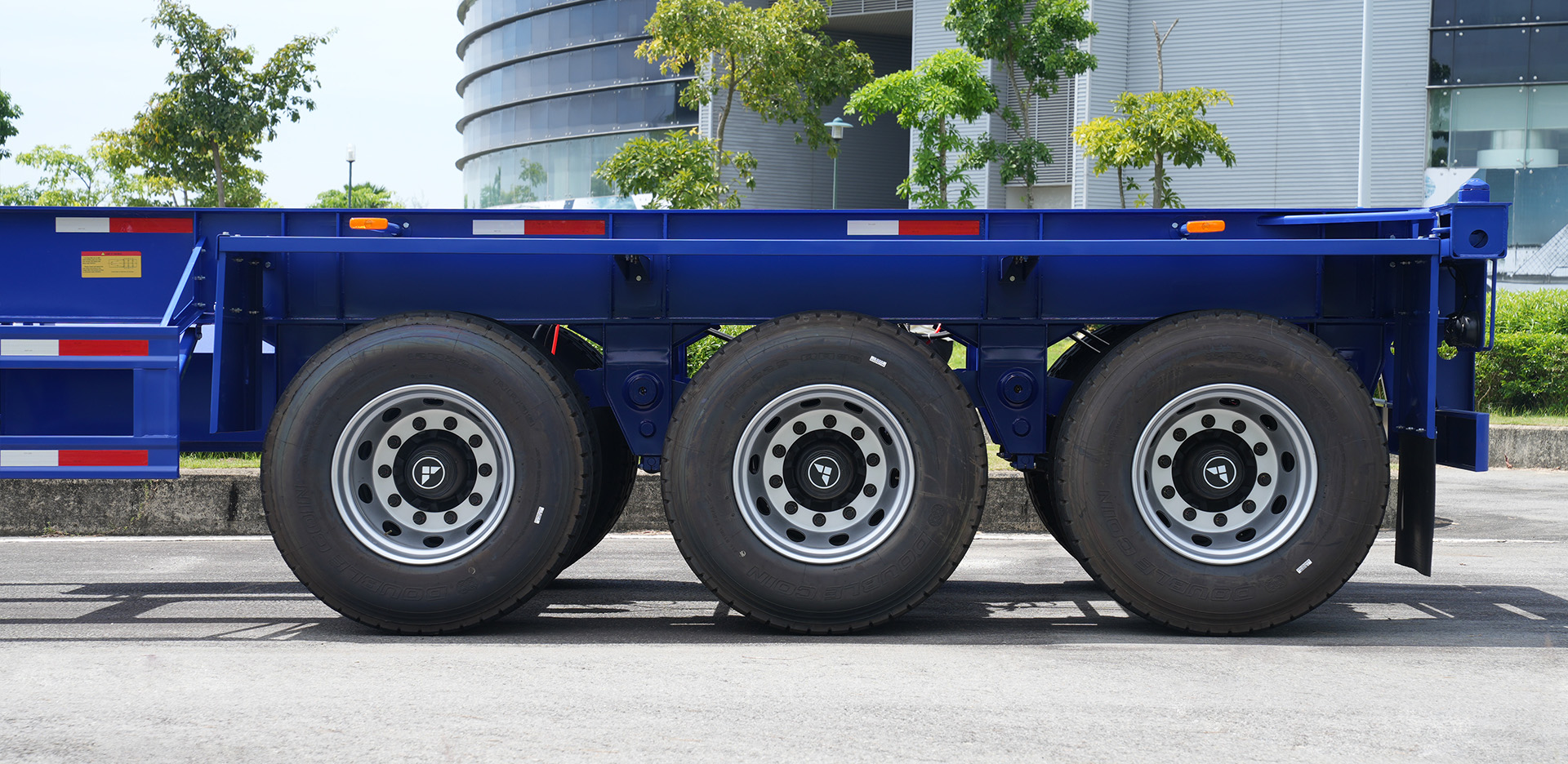 Thiết kế 3 trục với kết cấu khung xương chắc chắn, tải trọng chuyên chở lên đến 33,5 tấn. Sản phẩm phù hợp chở container khô & lạnh kích thước 40ft.