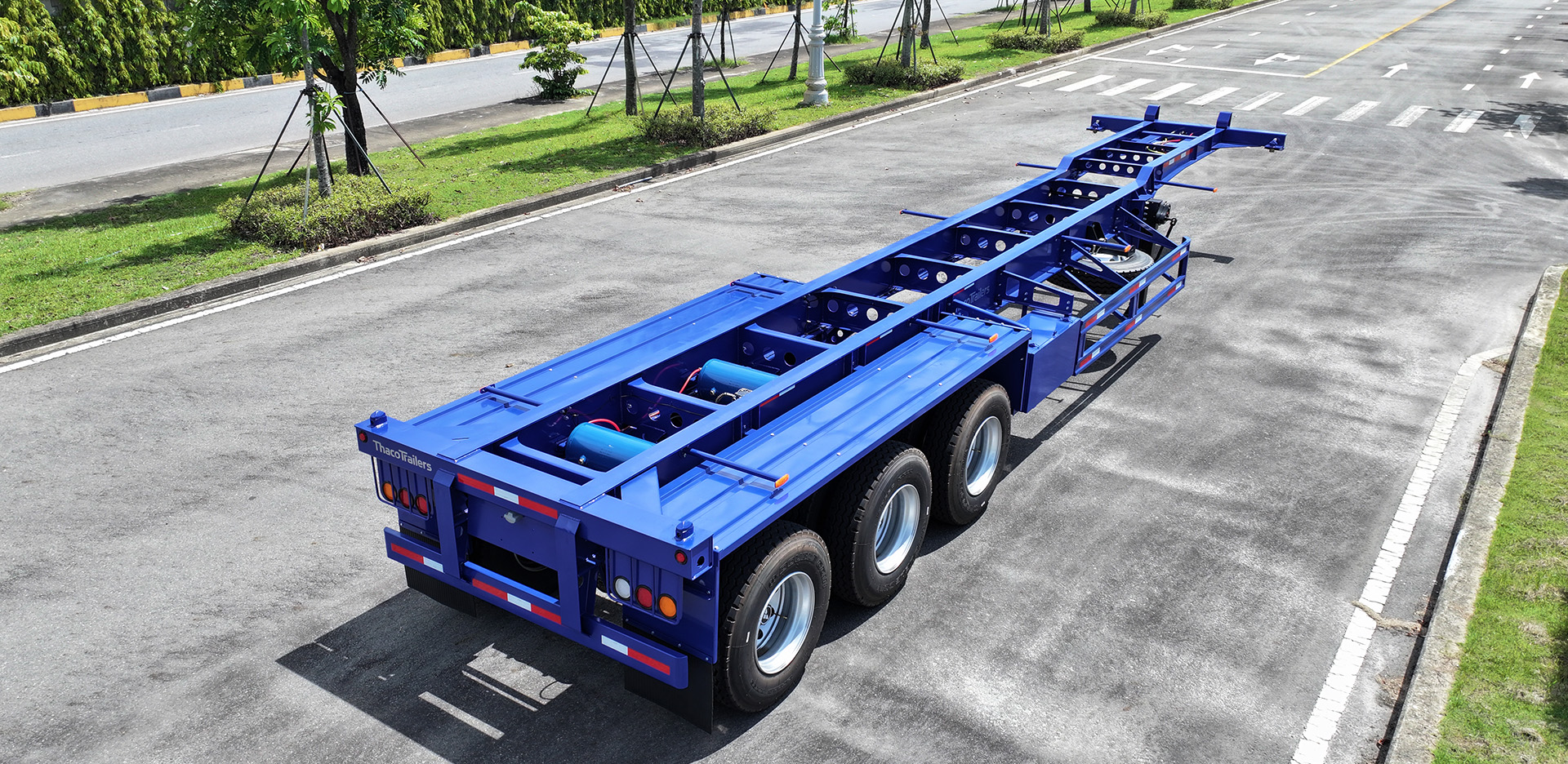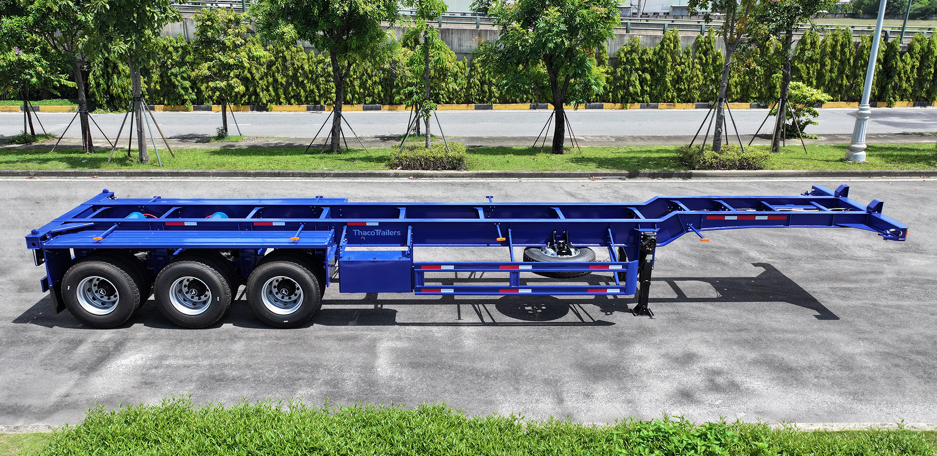 Sơ mi rơ moóc Xương cổ cò Thaco Trailers 40’ 3 trục 4 khóa